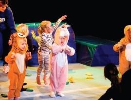 De grunnleggende motoriske ferdigheter står i fokus, samt rytme og bevegelser til musikk.